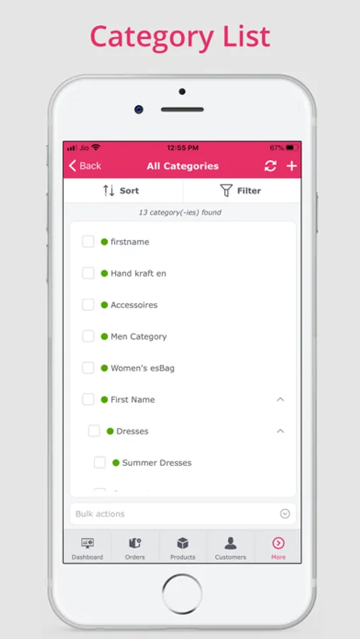 * Apply bulk operations(enable/disable/delete) to multiple categories