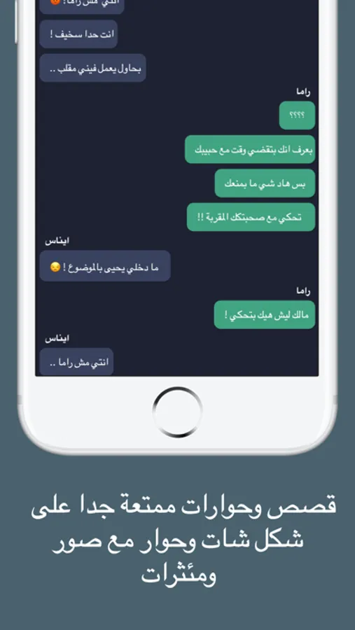 -يحتوي التطبيق على الكثبر من قصص الحب و قصص مضحكة وقصص رعب وقصص مشوقة بطريقة تفاعلية ومبتكرة على شكل حوار شات