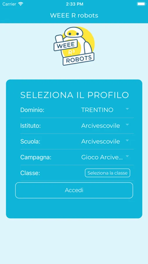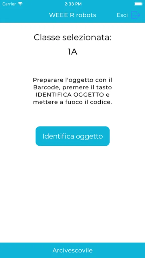 This App allows teachers, participating in the WEEE R robots campaigns, to read the barcode attached to EEE and WEEE objects brought by children to school and to transmit it to the WEEE R robots Web App, to complete the object classification procedure.