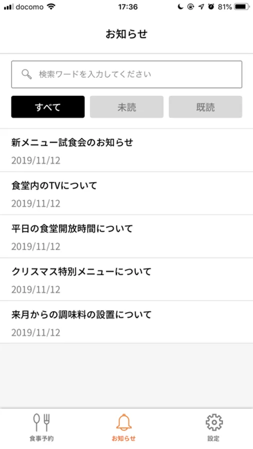 施設内でのご案内や大事なお知らせもアプリ経由ですばやく受け取れます。