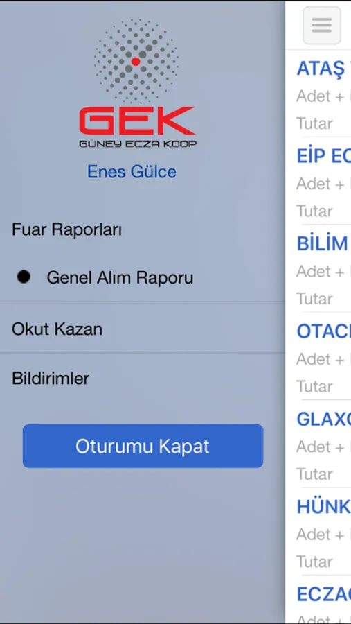 * Bu uygulama ile, Eczacı Kooperatifi ortakları tarafından, etkinlikler kapsamında verilen siparişlerin, tedarikçi ve malzeme detayında ortaklara bilgilendirilmesi sağlanmaktadır.