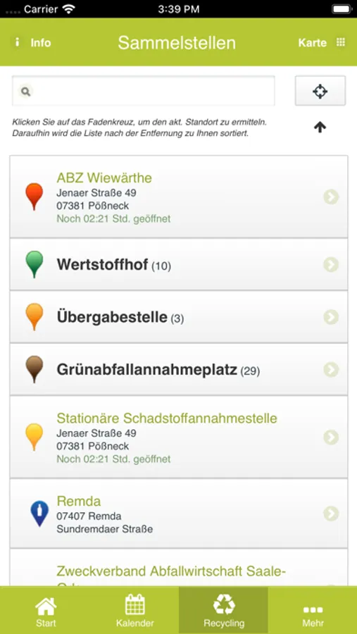 * Standortabfrage zum noch leichteren Finden der nächsten Sammelstelle.