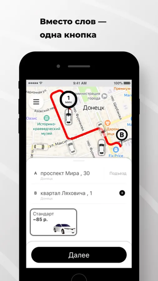 — Теперь достаточно включить GPS и приложение само определит ваше местоположение. Не забудьте указать конечную точку на карте и можете наблюдать, как к Вам едет автомобиль;