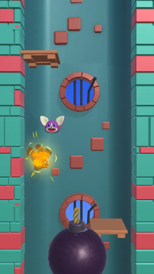 Simply tap to shoot the bomb on the screen using the explosion to make the character jump!