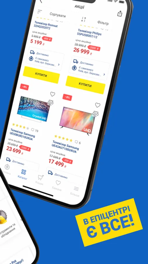 Для вашого комфорту ми створили зручний і зрозумілий мобільний додаток Епіцентр, який має наступні можливості:
