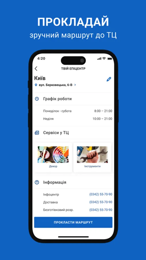Застосунок Епіцентр – зручний, безпечний і корисний. Після авторизації за номером телефону ви можете ознайомитися з відповідями на поширені запитання про карту ВИГОДА, покупку балами, спеціальні пропозиції, Cash back і сейф. Додаток допоможе вам максимально ефективно використовувати час і економити кошти. При купівлі онлайн вам доступний безкоштовний самовивіз і різні способи доставки по всій України.