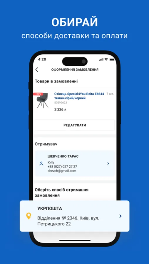 • безкоштовний самовивіз із 80+ центрів видачі замовлень по Україні.