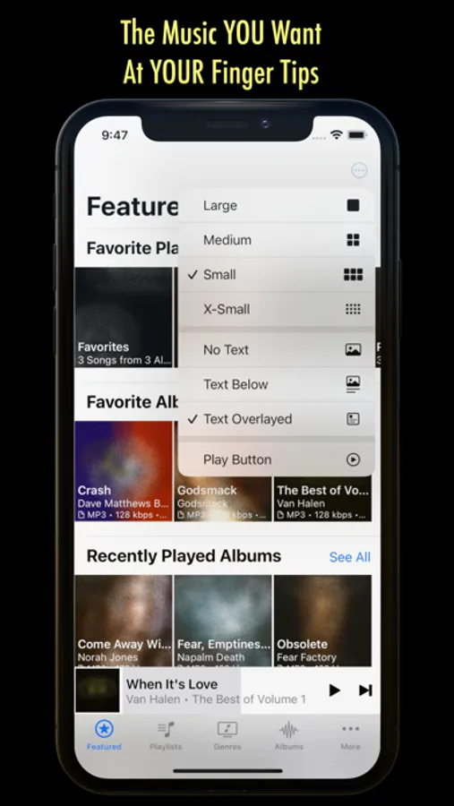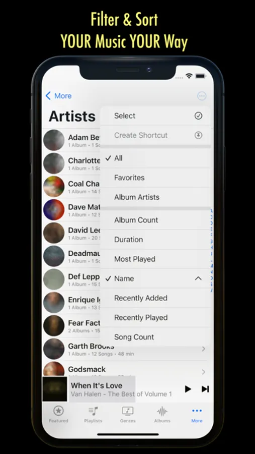 - Custom Shortcut Tabs - fast access to your music your way and even mirrored into CarPlay - make the app work how you want it to work