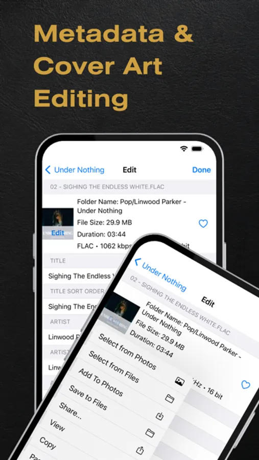 • Tag & Organize: Edit metadata, album artwork, ratings, and favorites to keep your collection in perfect order.