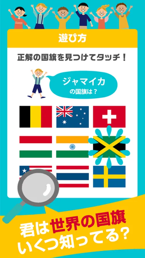 シンプルなクイズゲームで楽しく国旗を覚えよう!