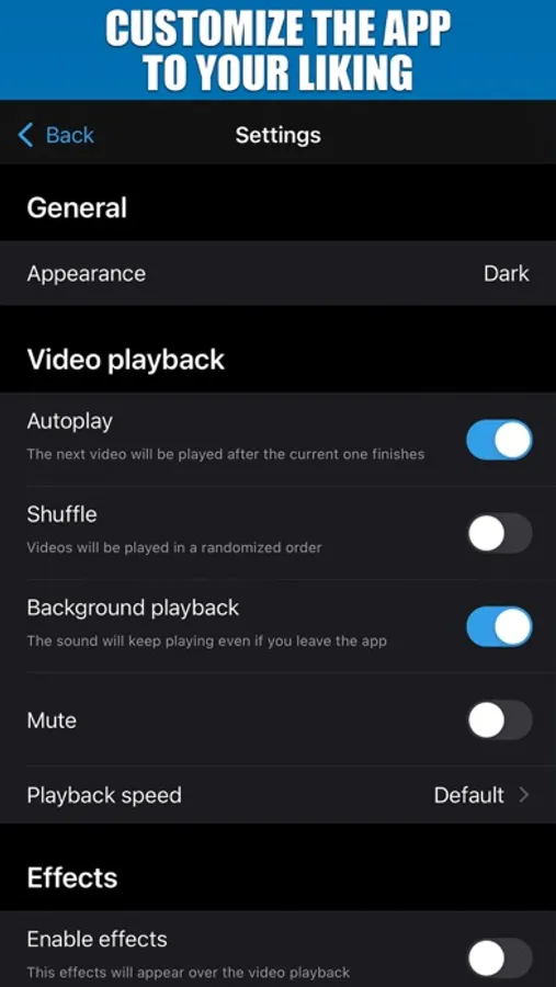 - Possibility of repeating the video indefinitely