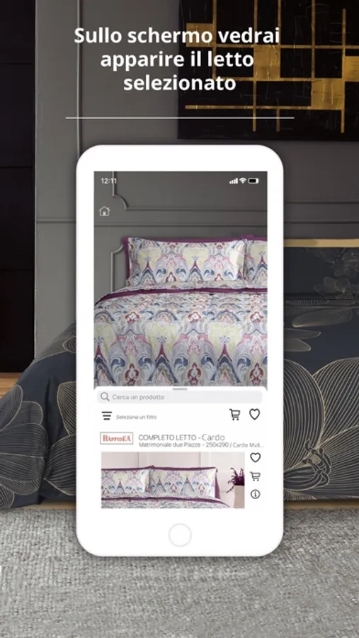 Con CASAhomewear potrai consultare il catalogo prodotti, scegliere ciò che più ti piace (completo letto, parure copripiumino, trapunta, lenzuola) e visionarlo in 3D direttamente sul tuo letto grazie alla realtà aumentata della tecnologia EASYHOMEWEAR.