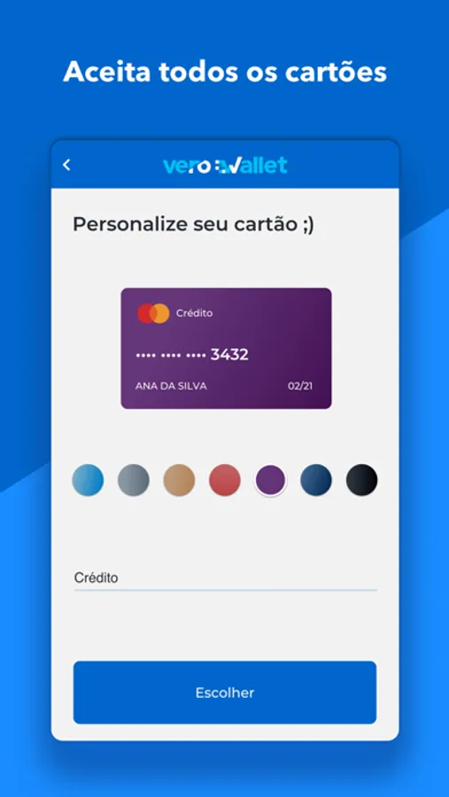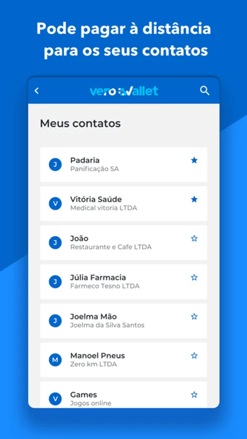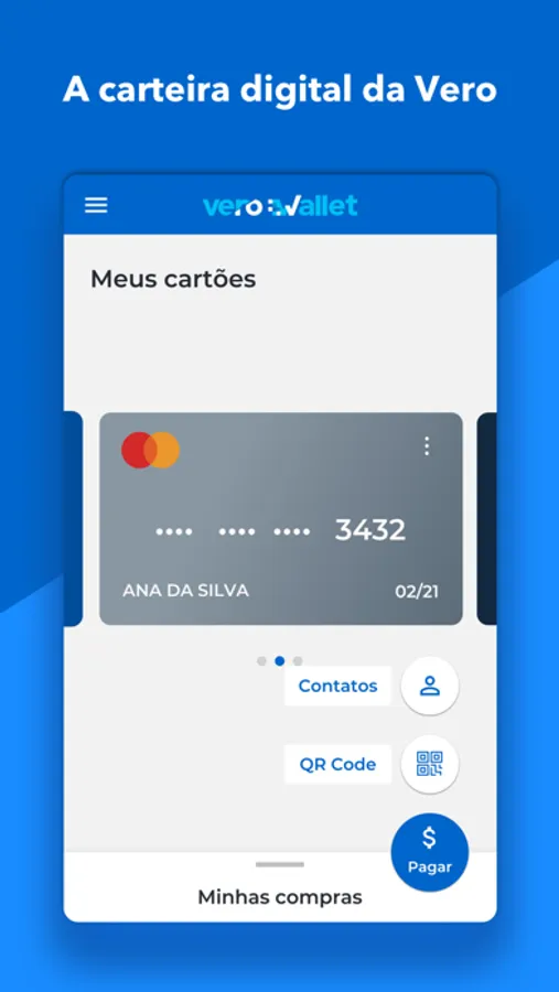 Você pode cadastrar seus cartões e pagar os credenciados Vero usando a câmera do seu smartphone ou selecionando um deles no app, desde que estejam salvos na sua lista de contatos.
