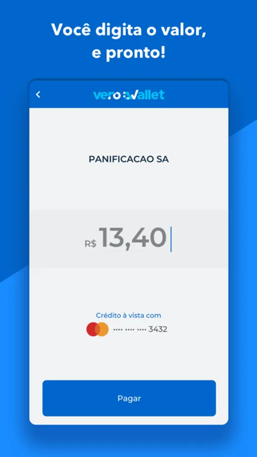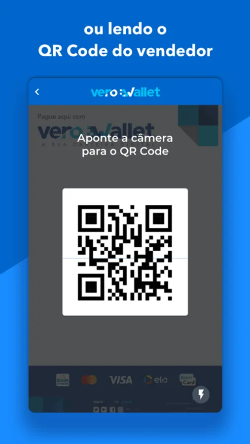 Para QR Code, é só apontar a câmera do smartphone para o QR Code do credenciado Vero, digitar o valor e confirmar.