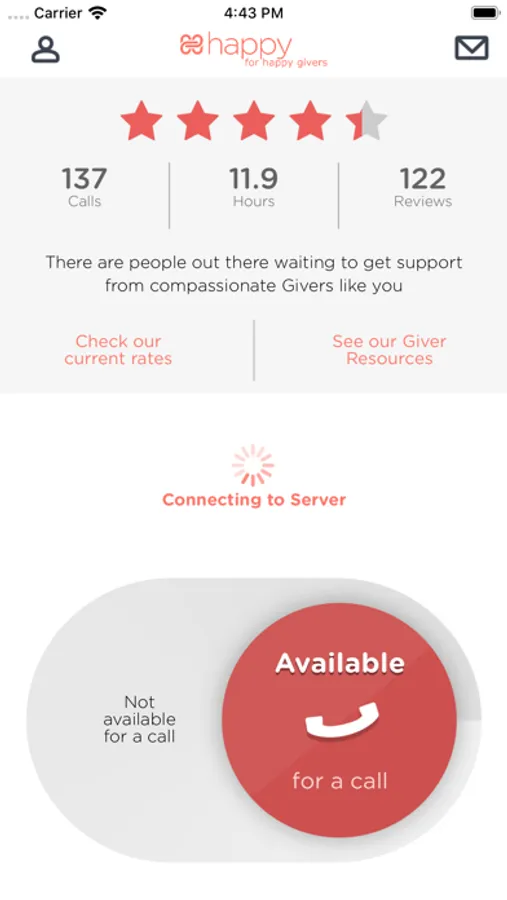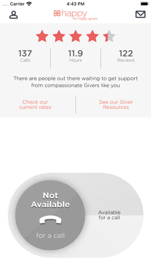 Download the app, set up a brief profile and hit “connect.” You will be matched with a Happy Giver. We all experience moments when we can benefit from extra support. Some moments are life changing— becoming a parent, moving to a new city, or losing a loved one. Others are part of everyday life—feeling discouraged at work, frustrated with a spouse, or simply feeling self-critical. Happy provides you with a safe space to talk about whatever you want for as long as you want.