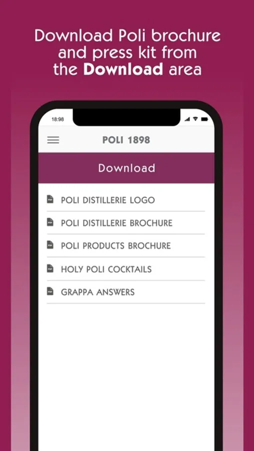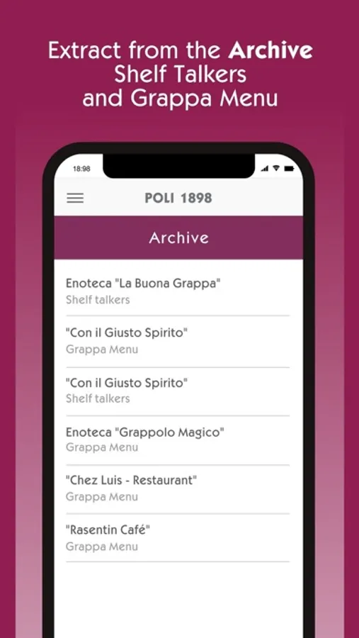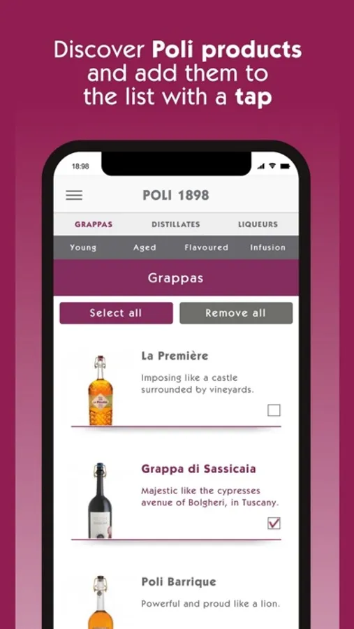 The app aiming to improve the knowledge and the presentation of Grappas, spirits and liqueurs of the Poli Distillery.