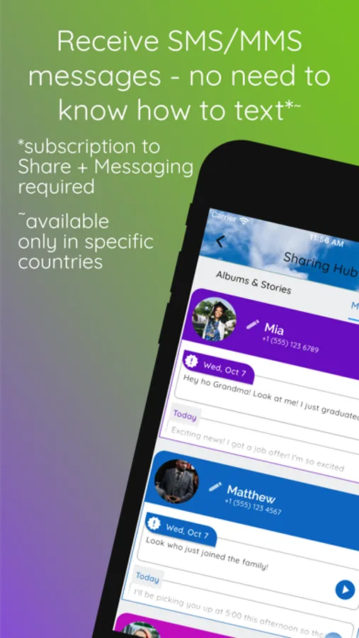 * get a Folktells phone number for a senior so they can receive text & photo messages from anyone so they never miss out on the in-the-moment excitement (Canada, UK, USA only)