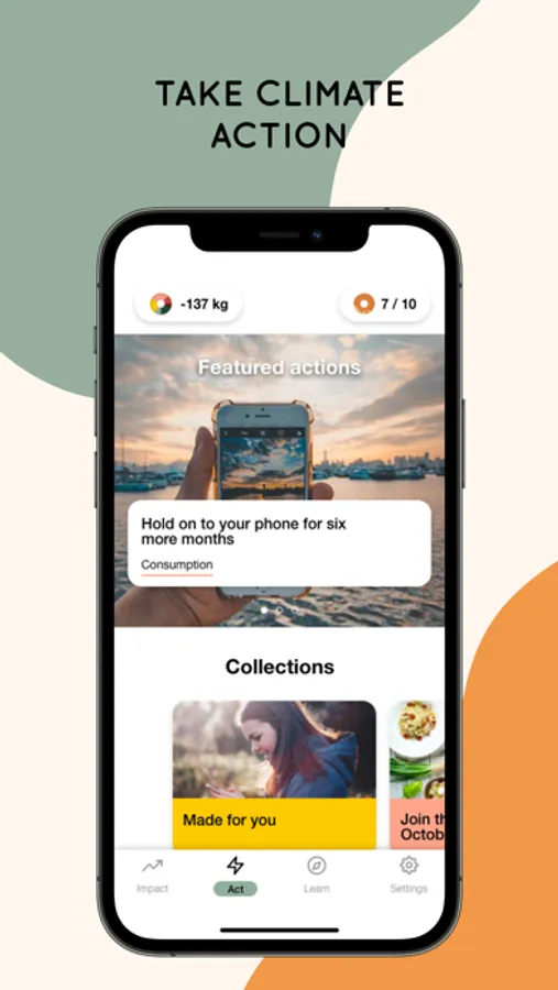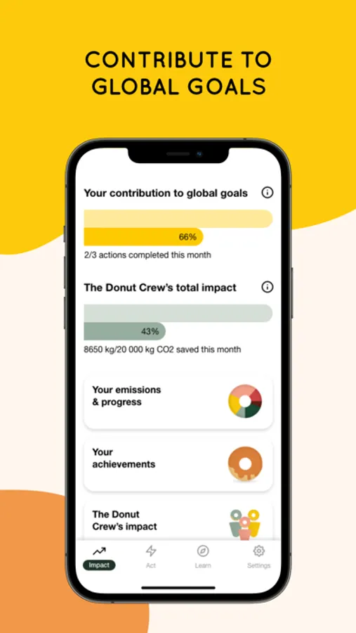 Put your knowledge into action and explore concrete tips to reduce your carbon footprint! Carbon Donut gives tips tailored to your lifestyle, and for each action you see how big an impact you can make in terms of CO2 reductions.
