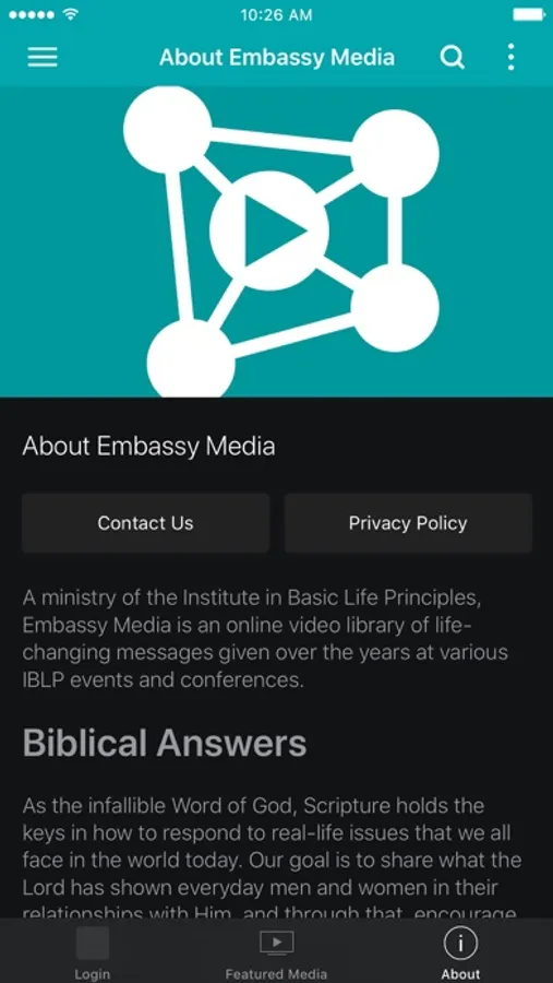 The Embassy Media app gives subscribers convenient access to more than 1,000 audio and video messages to stream on demand. Log in with your Embassy Media account to access your watch later list, download audio for offline listening and more.