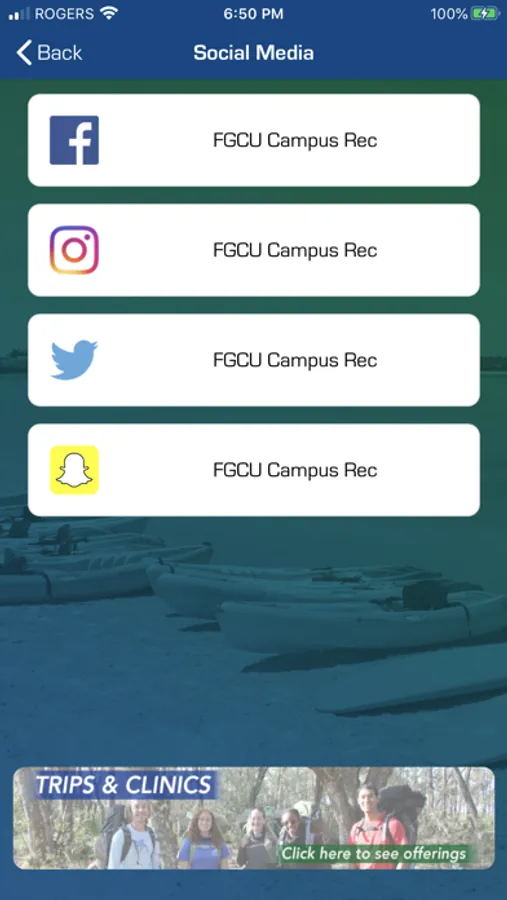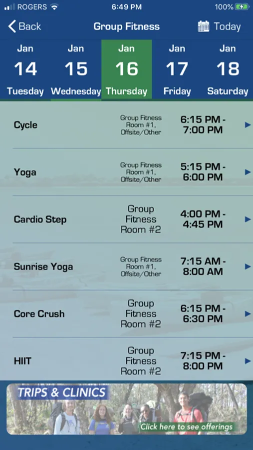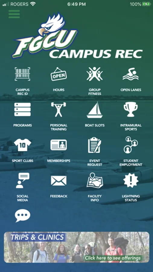 View outdoor trip and group fitness class schedules, find Intramural Sport and Sport Club offerings, register for open boat slots, and access facilities using a unique digital ID. You can also stay up to date on facility hours, closures, weather alerts and program changes with instant push notifications.