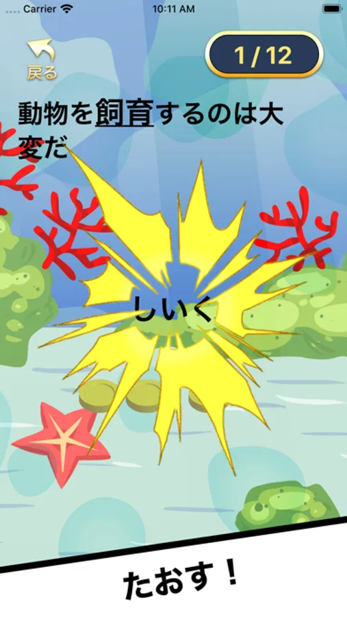 漢字の読みが正解していれば、宇宙人を倒すことができます。