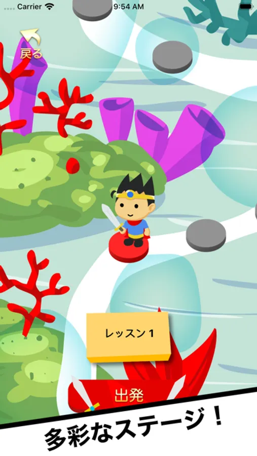 ステージ画面で、下側の出発ボタンを押して開始します。