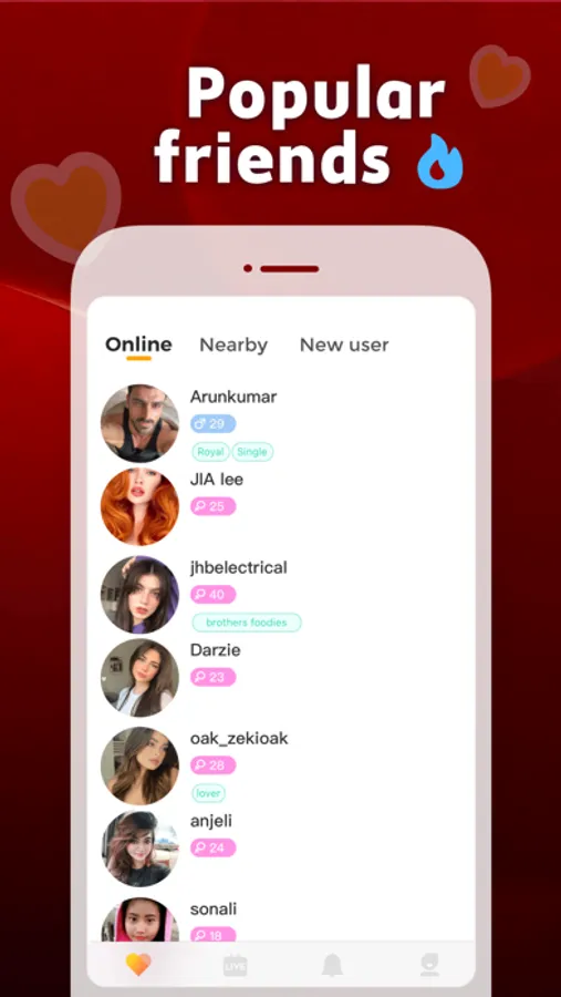 Meet friends through fun chats! Download the Live and chat anytime, anywhere! Call in real-time and get to know real people! It's so easy to find mates on Live! No limitations!