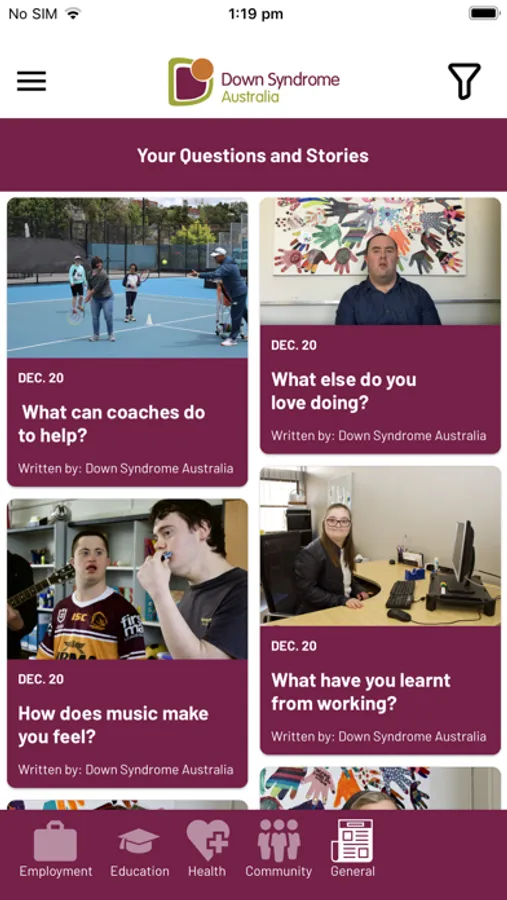The Down syndrome Australia, Ask about Down Syndrome app provides information about Down Syndrome, inclusion and advice on ways the community can support inclusive.