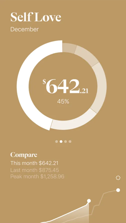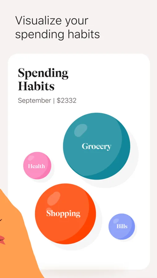 Fun, floating bubbles on the homepage card will help you understand where your money goes. Tap on one to expand the category and learn how much you spent this month, last month and what’s your top spend for this category.