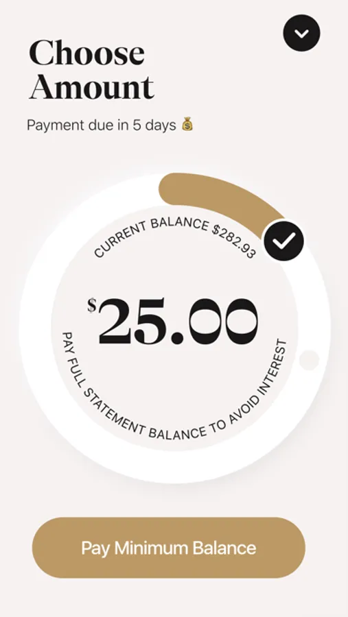 Set up autopay and don’t worry about late fees or additional interest charges. Turn the payment dial and see exactly how much you need to pay for minimum, statement and full balance payment. Get notified before the payment is due.