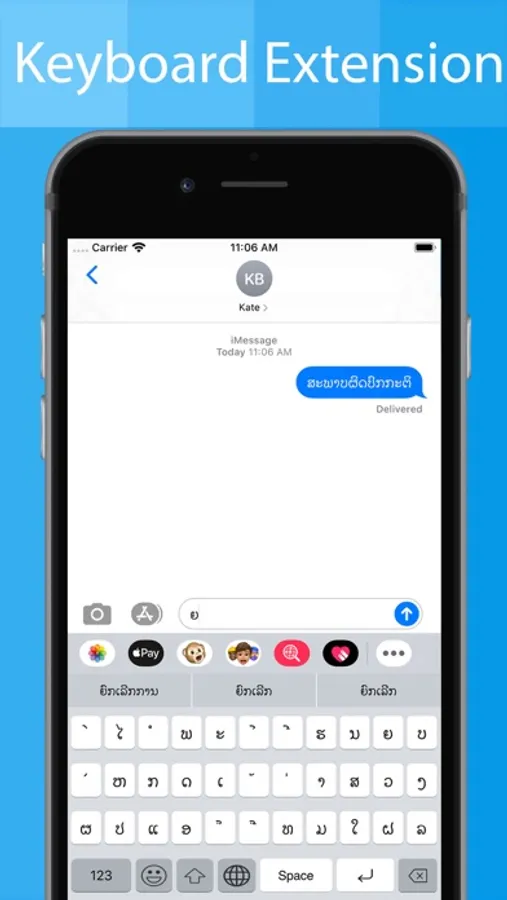 * With the help of Lao Keyboard Extension you can write in Lao language in any application. You have add the Lao Keyboard Extension from your phone settings.