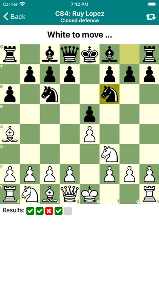 A simple and efficient method to memorize variations of openings in your repertoire. You can train either white’s moves or black’s moves only or both. Optionally, you can train all variations at once. The trainer chooses the opponent’s moves randomly from your opening repertoire. Chess Opener tracks your progress and shows your stats.