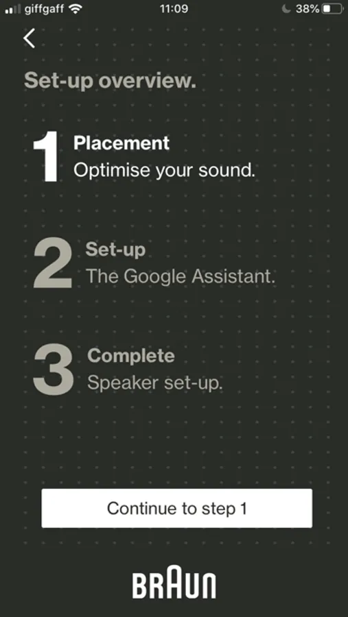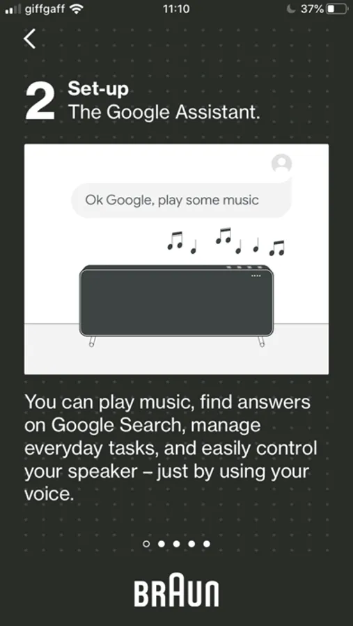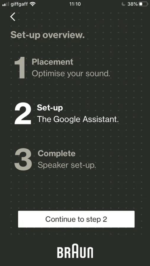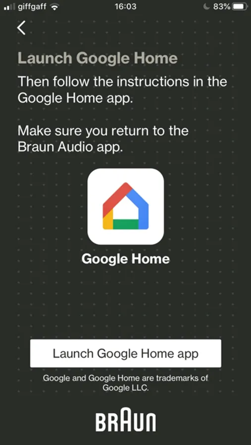You will be asked to set up the Google Assistant as part of the acoustic set up, please remember to go back into Braun Audio app from Google Home to apply your settings.
