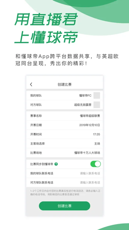 -直播、比赛信息和数据可以推送到懂球帝App,与英超,欧冠同台呈现,在广大球迷面前呈现你的精彩。
