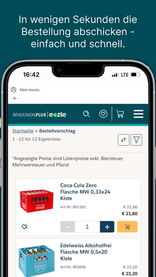 Einfacher können Sie Ihren regelmäßigen Bedarf an Getränken nicht decken. Vom Warenkorb in zwei Klicks die Bestellung erledigen. Schneller als an jedem PC oder Laptop. Garantiert!