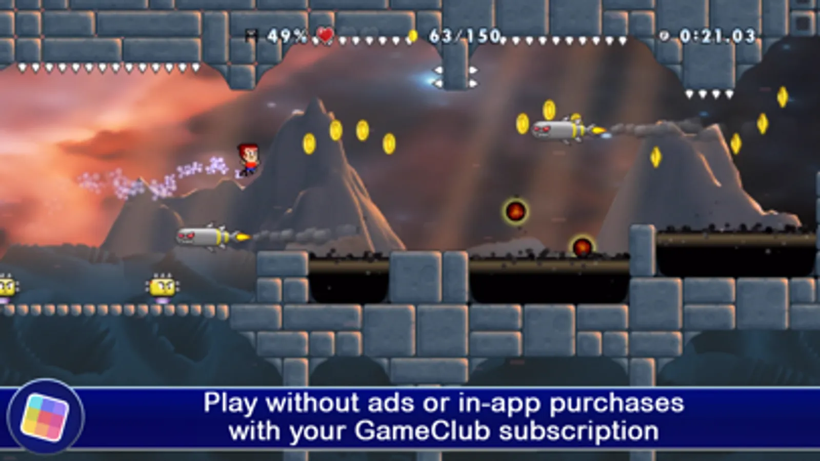 The good news? Mikey's got an awesome new pair of rocket boots that allow him to fly through the air at great speeds. The bad news? The boots won't turn off and can't be removed. Uh-oh! Zip through more than 40 new stages, weaving between incoming missiles, maneuvering around treacherous spikes, and scooping up as many coins as you can.