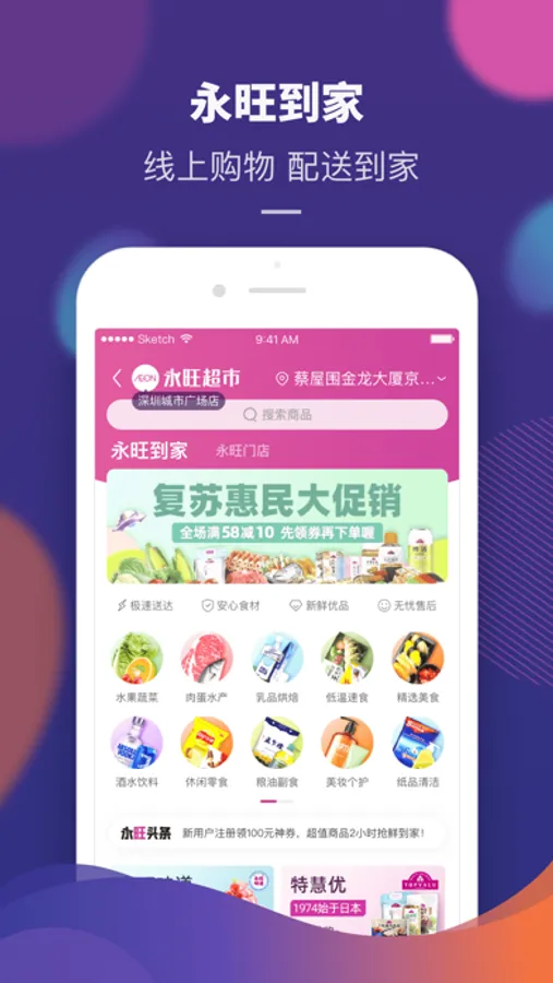 【超市到家】线上下单,极速配送,提供有品质、有温度、有真情的全新服务。