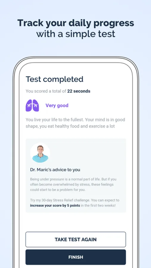 The app is designed to promote consistency by adding structure to your practice, and by being available to you anywhere, anytime. Use it as your guide to turn to for proper execution of technique, and to sustain your motivation by monitoring your progress and stress levels with the MARIC test.
