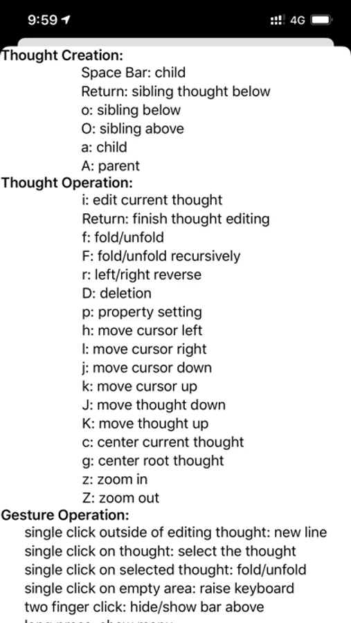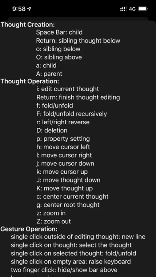 Mindmap can also be managed by gesture, single/long press on thought or empty area to popup menu.