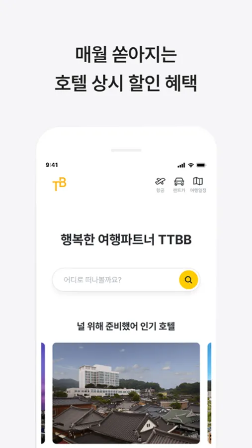 티티비비 (TTBB)는 KB국민카드와 트립비토즈가 함께 만든 국민카드 회원 전용 자유여행 플랫폼입니다.