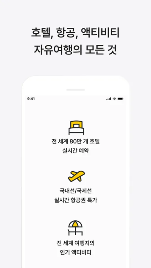 호텔, 항공, 액티비티 등 여행에 필요한 서비스를 다 모았습니다.