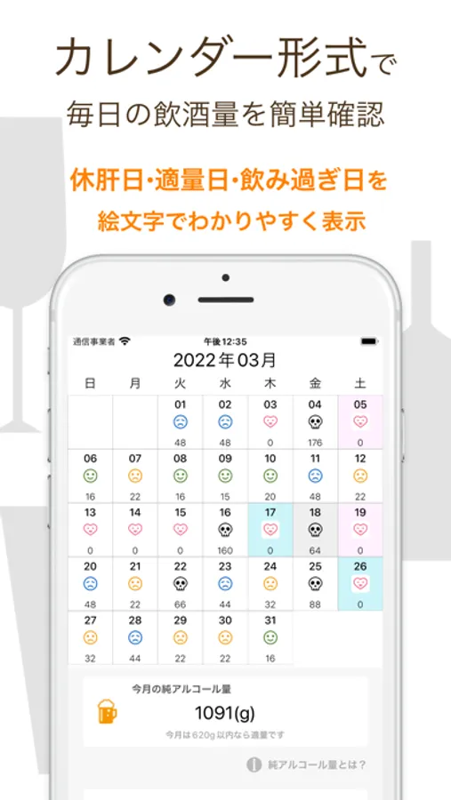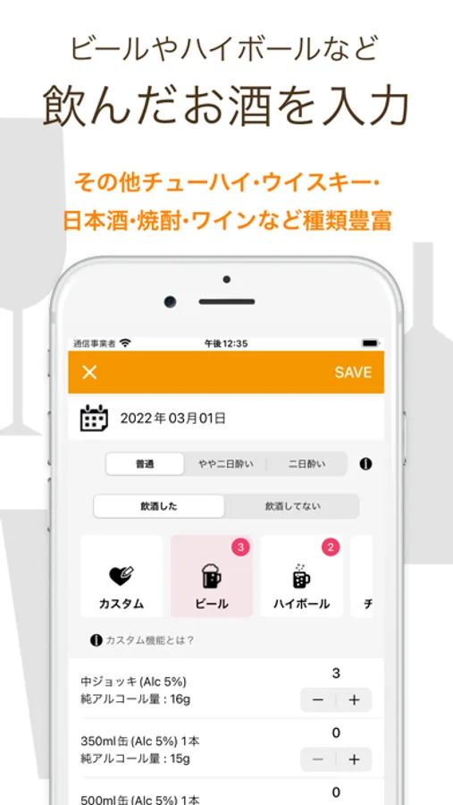 ほぼ毎日お酒を飲んでいて、減酒+お酒の適量が知りたいと思ったので作りました。