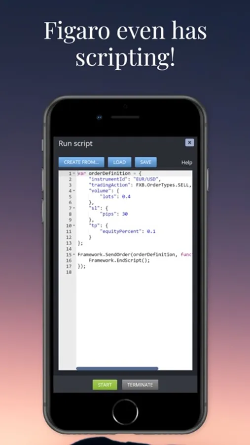 Figaro has it all: one-tap trading, order placement and editing direct from charts, choice between deal tickets or order grids, sophisticated order templating, and power tools such as grids and batches. You can even write your own scripts to place a single order or basket with a tap of an icon.