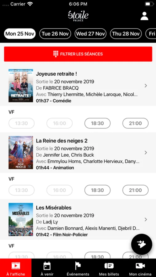 RÉSERVEZ VOS PLACES DEPUIS L'APPLICATION