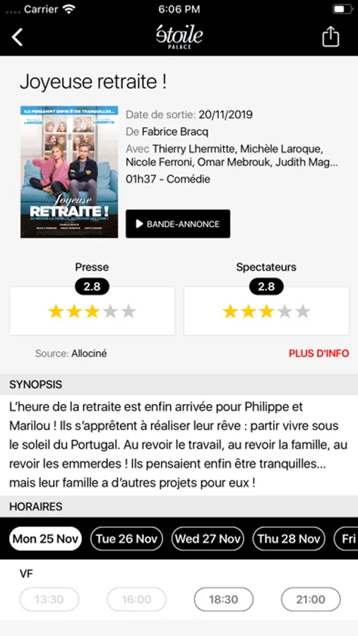 Retrouvez l'ensemble des informations de votre cinéma Vichy Le Palace et achetez directement vos places de cinéma sur votre Smartphone grâce à notre application.