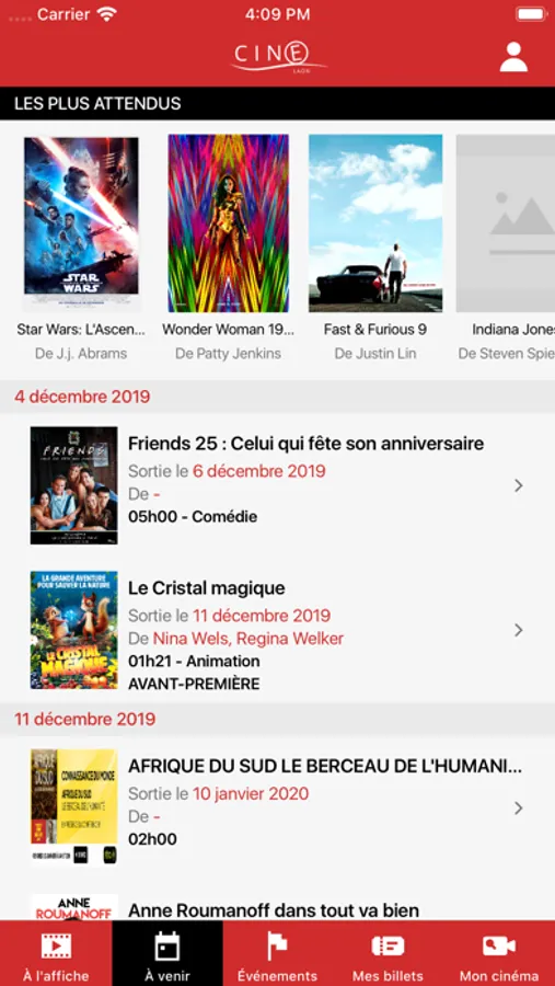 Découvrez tous les films à l’affiche, l’ensemble de vos séances, les films à venir mais aussi les événements de votre cinéma (Avants-premières, concerts, spectacles, événements spéciaux...)