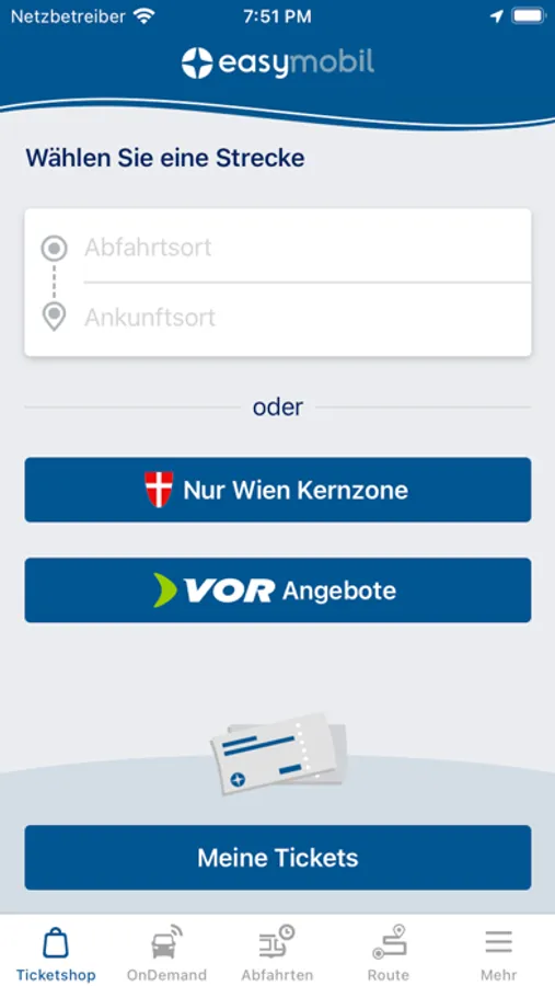Mit wenigen Klicks einfach Tickets für die gesamte Ostregion (VOR) und für ausgewählte On-Demand-Gebiete kaufen, aktuelle Abfahrts- Umstiegs- und Störungsinfos sowie Routingmöglichkeiten anzeigen lassen. Ganz easy mit easymobil.