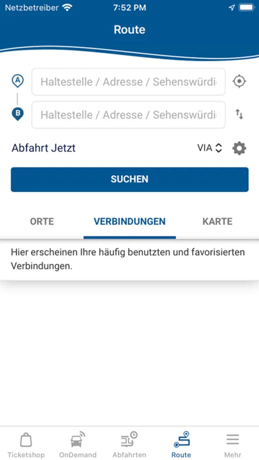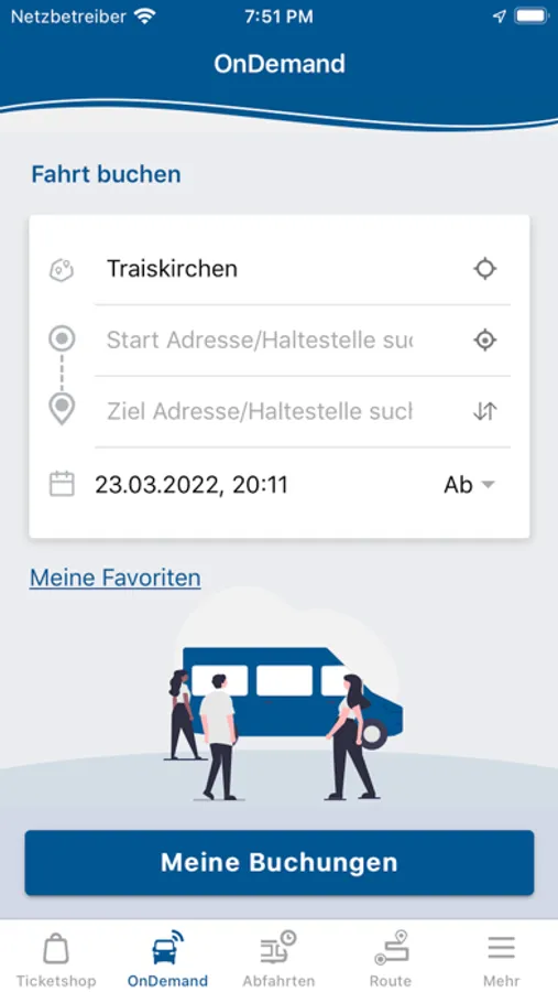 - Buchen von On-Demand-Services wie AST, Rufbus, Citytaxi, Shuttle, etc.