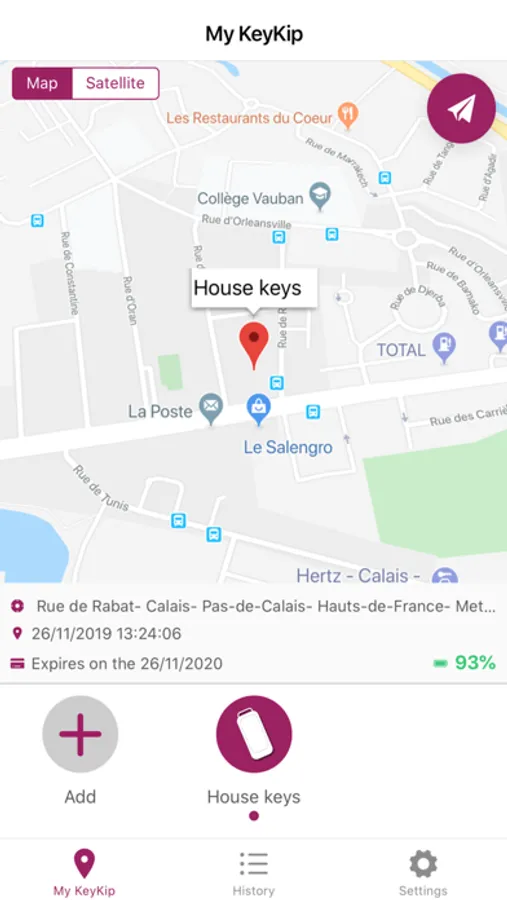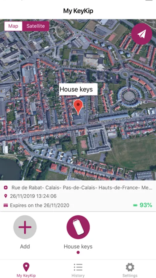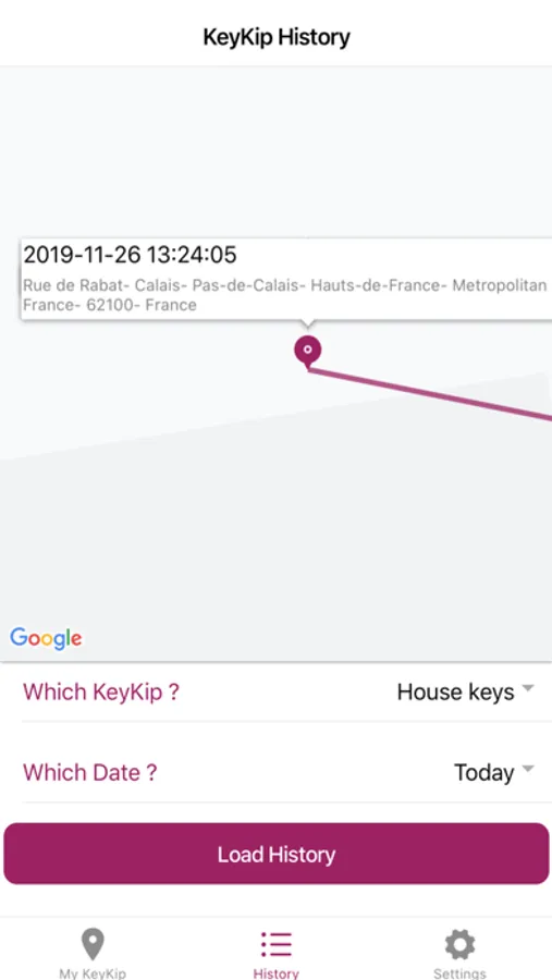 La fonctionnalité "Historique" vous permet de consulter à tout moment les déplacements journaliers de votre KeyKip.
