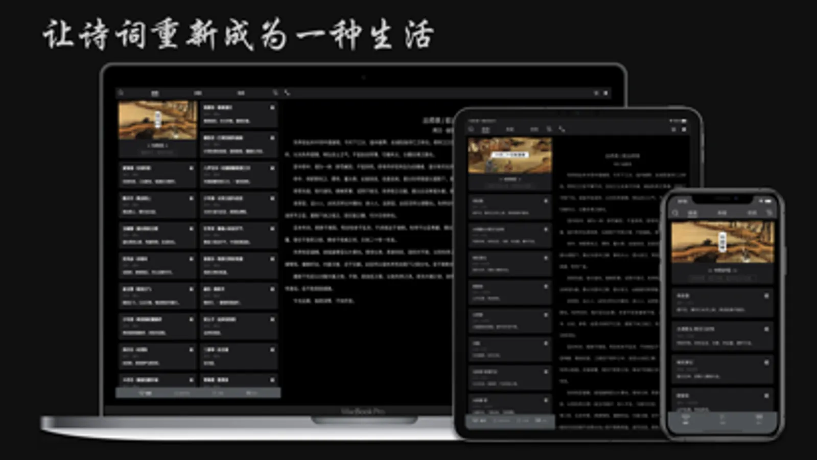 完美适配 iPad OS 与 iOS 13,任何 iOS 设备支持横屏模式,在 iPad 上更支持分屏模式,支持任意大小任意方向显示,做到可以一边欣赏一边记录优美的诗词。